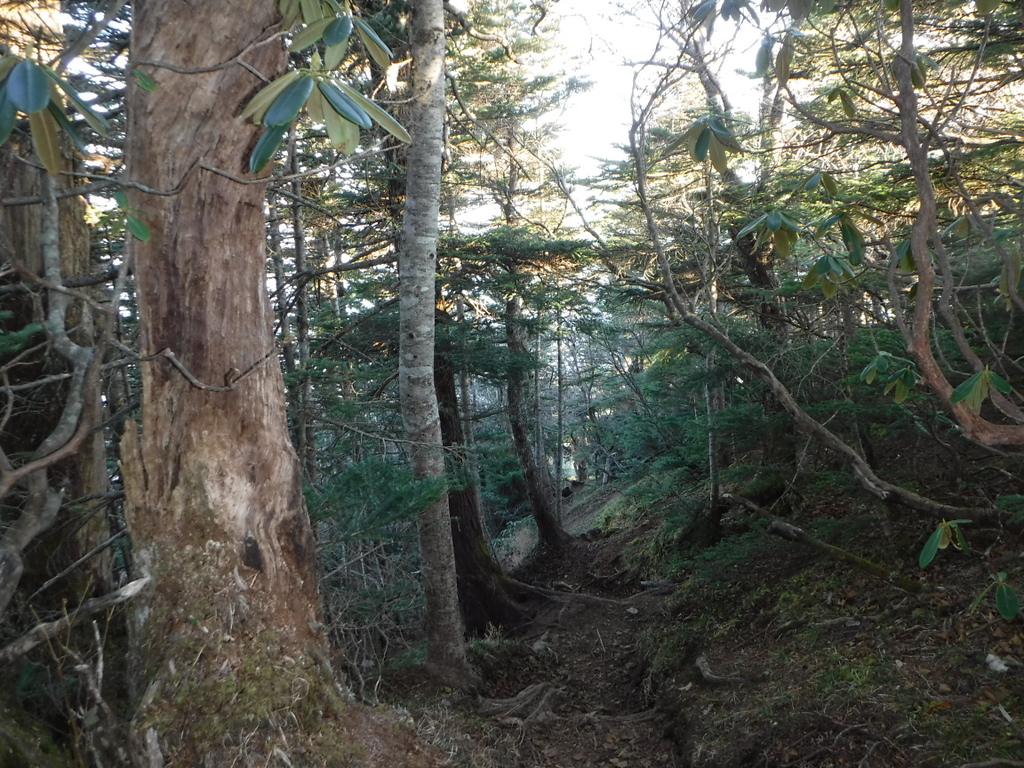 笹原を抜けて樹林帯に入ったら15分くらいだ。