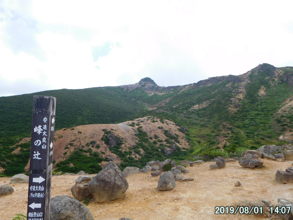 沼尻登山口(9:07)~船明神(11:53)~安達太良山(12:39/13:40)~峰の辻(14:07)~くろがね小屋(14:45)