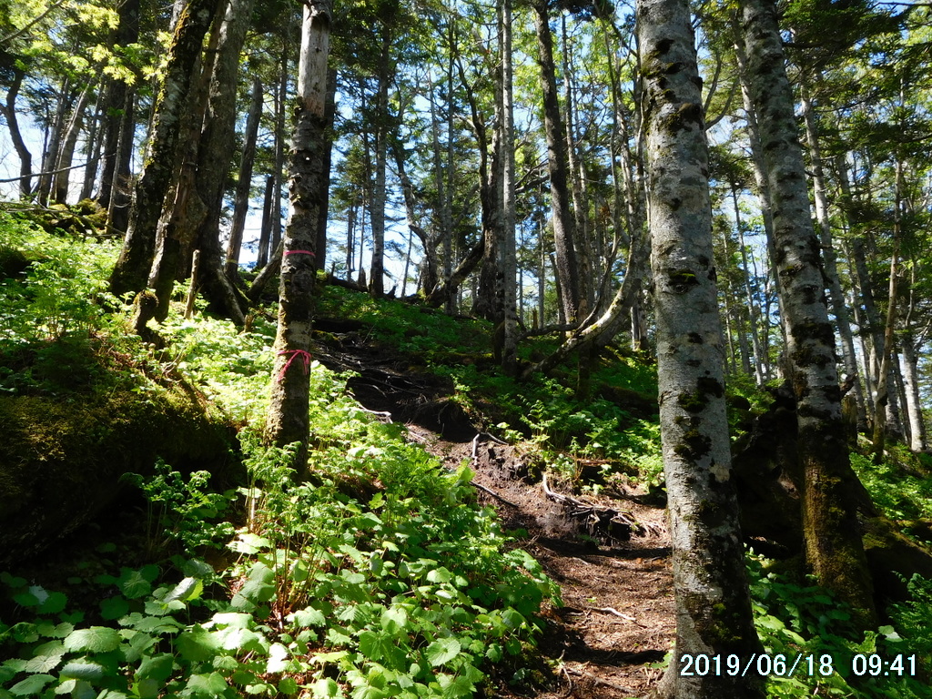 台倉高山の登山道は登り始めてからの2キロがやや傾斜が急だが、それから山頂までの2キロは緩やかなアップダウンの繰り返しになるものの歩きやすい。