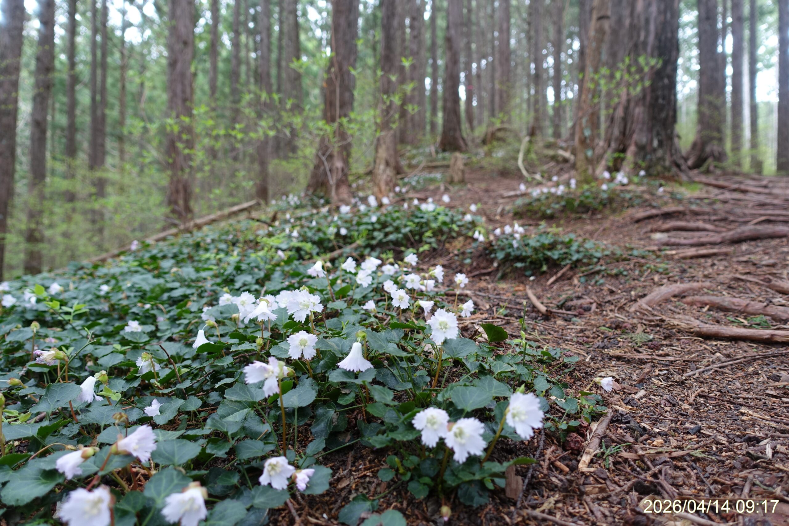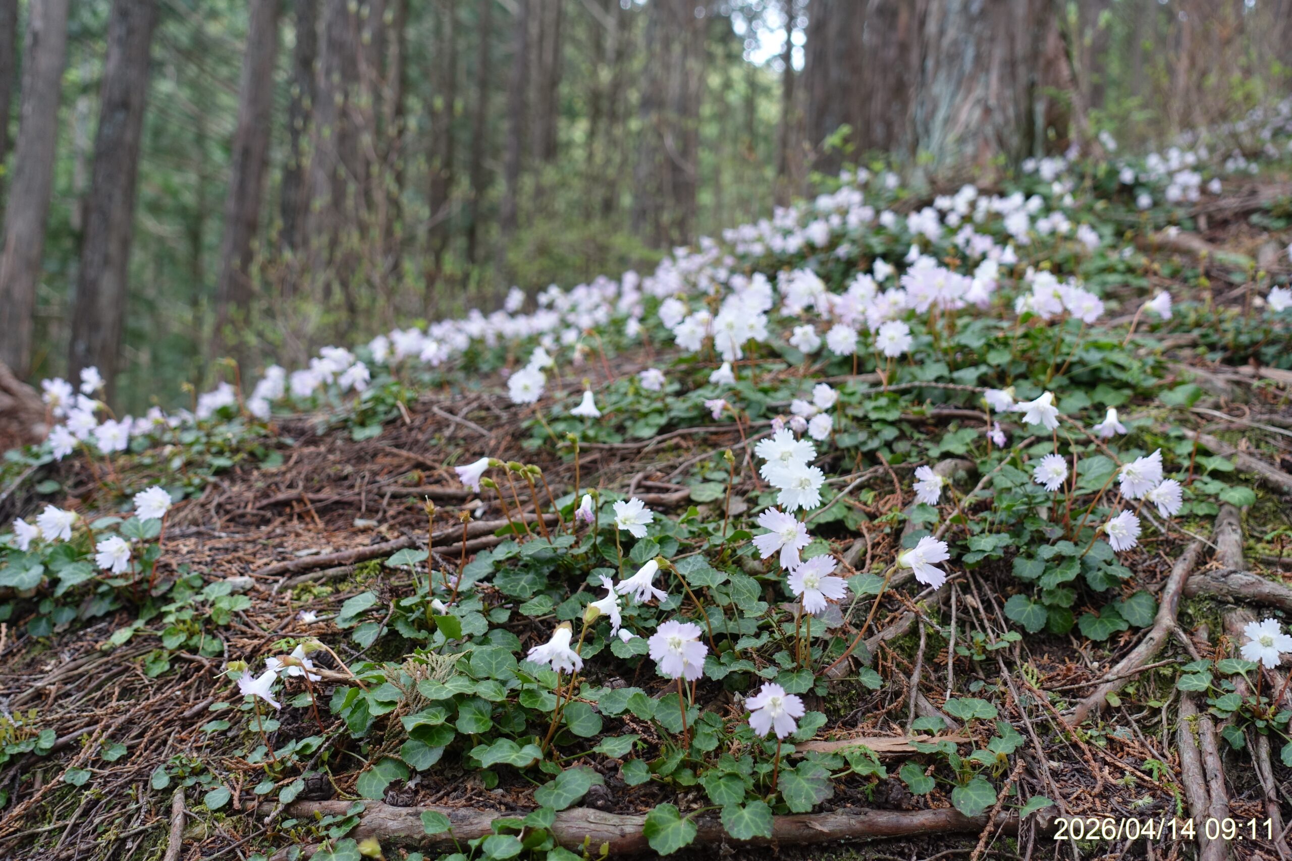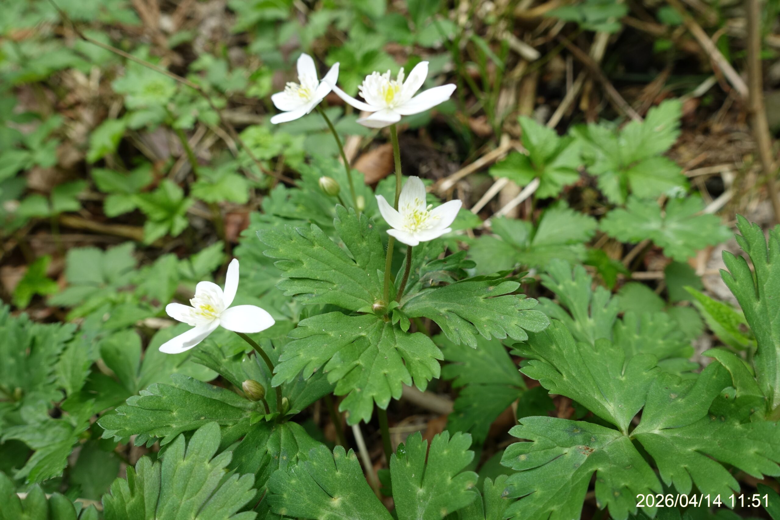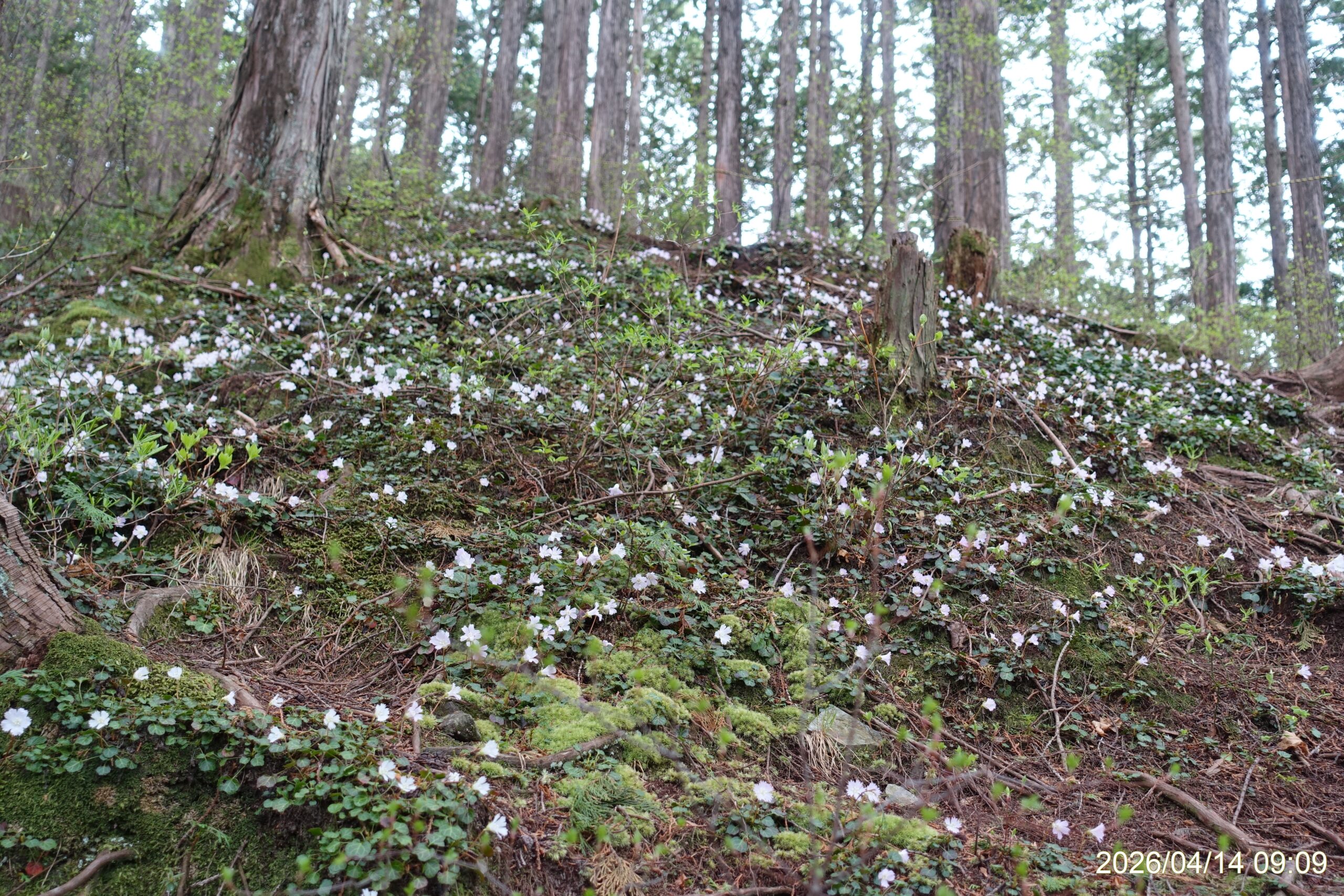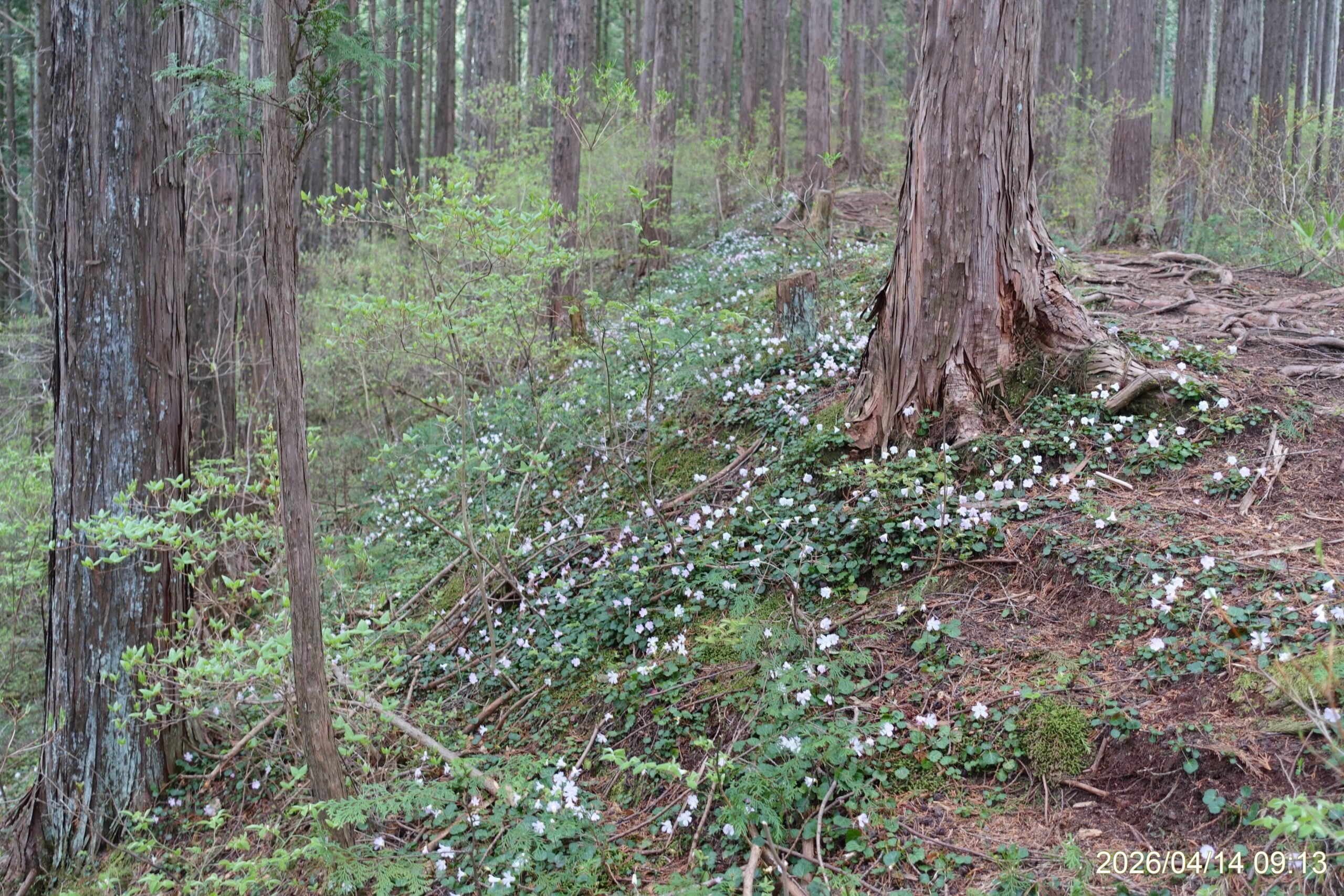 その林道沿いには花瓶山のもうひとつの顔、ニリンソウとキクザキイチゲの群落が見られる。