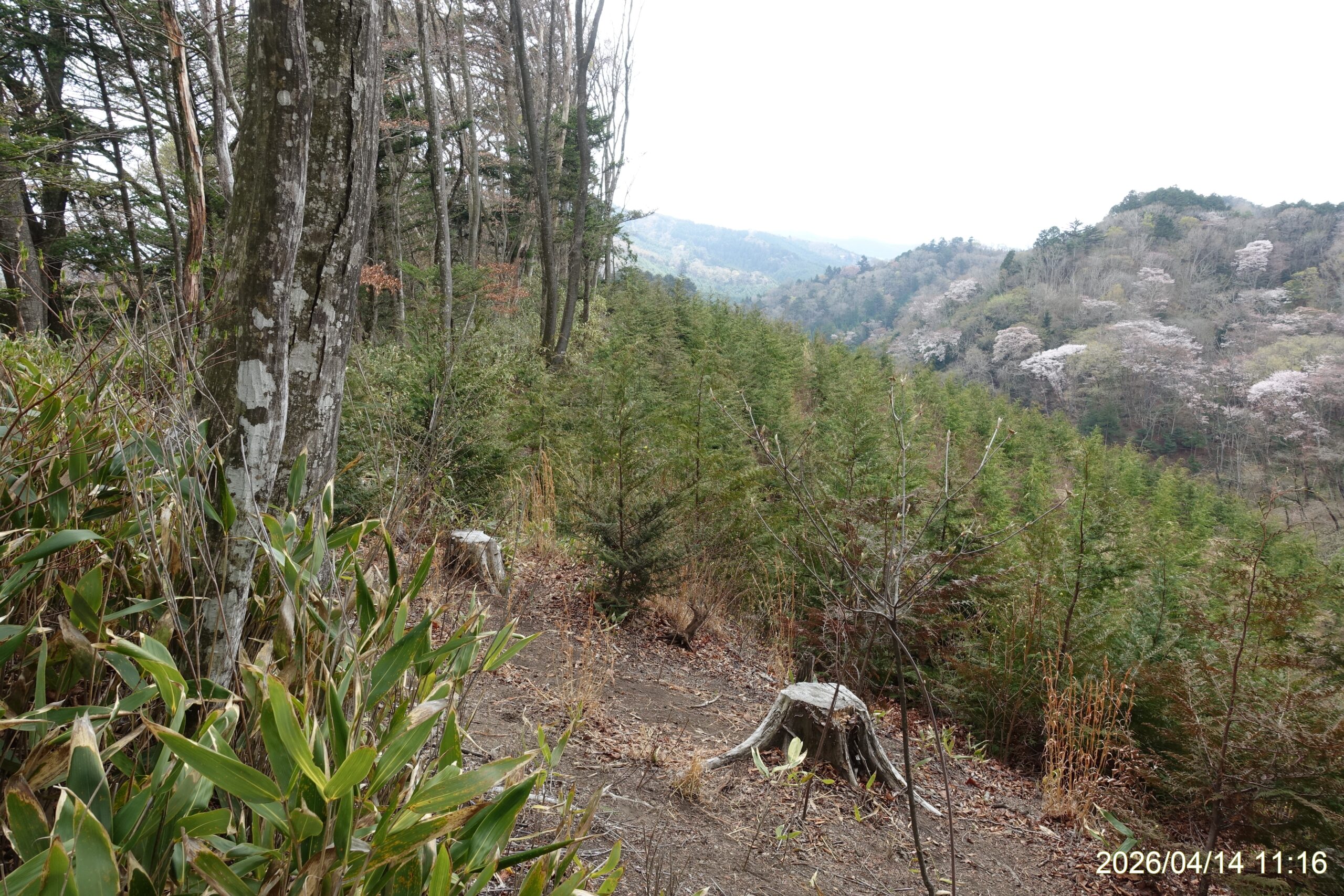 地理院地図にしたがって50メートルほど進むと展望が開け、手頃な休憩ポイントがある。