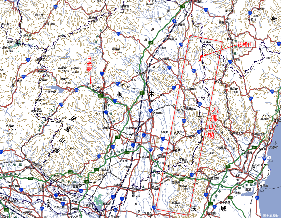 八溝山系に属する山で日光からもっとも近い山に「花瓶山(はながめやま)」が見つかった。