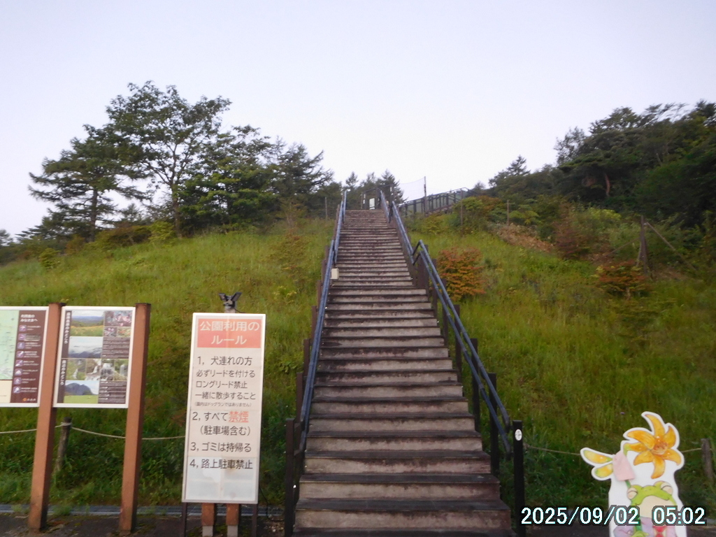 キスゲ平園地はニッコウキスゲの群落がある場所として知られていて、階段とは別に草原の中を歩ける散策路があり、ニッコウキスゲ他の高山植物を楽しみながら上がっていける。