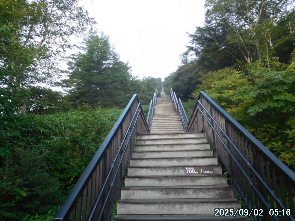 1445段の階段がここ1345メートルの登山口から小丸山(1601m)直下まで続いている。