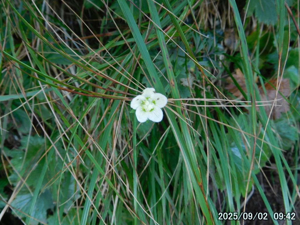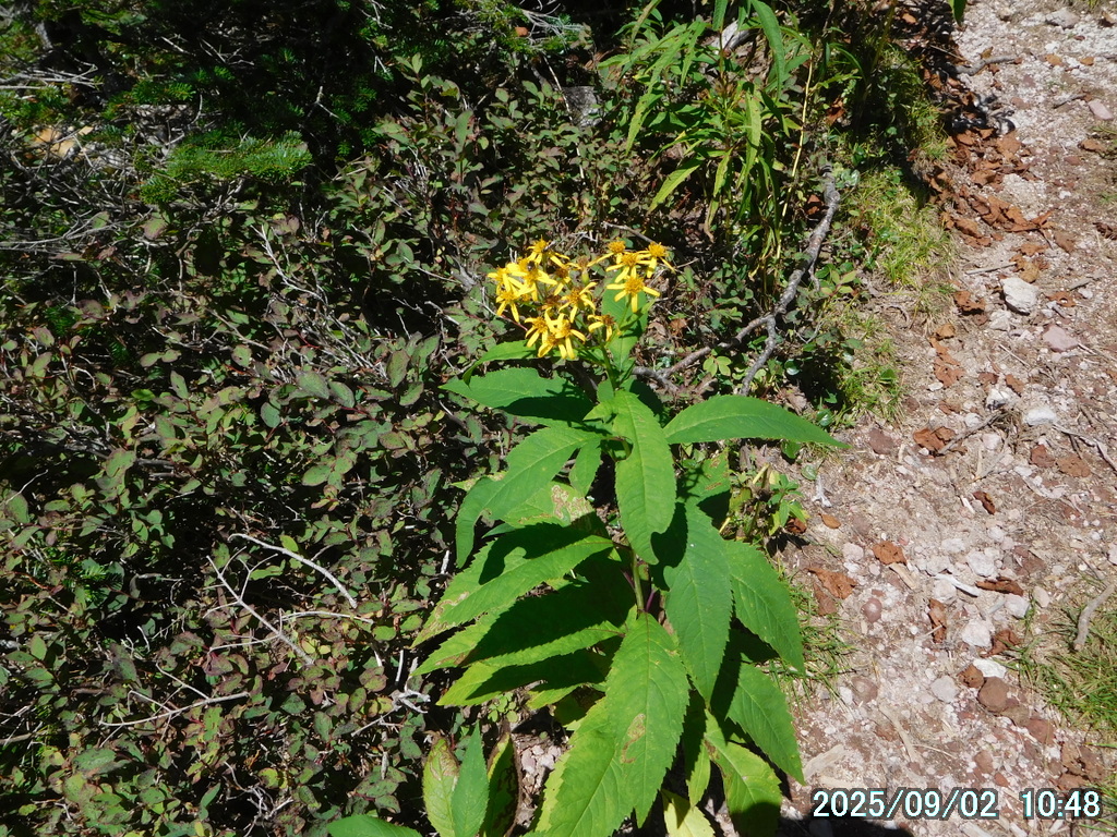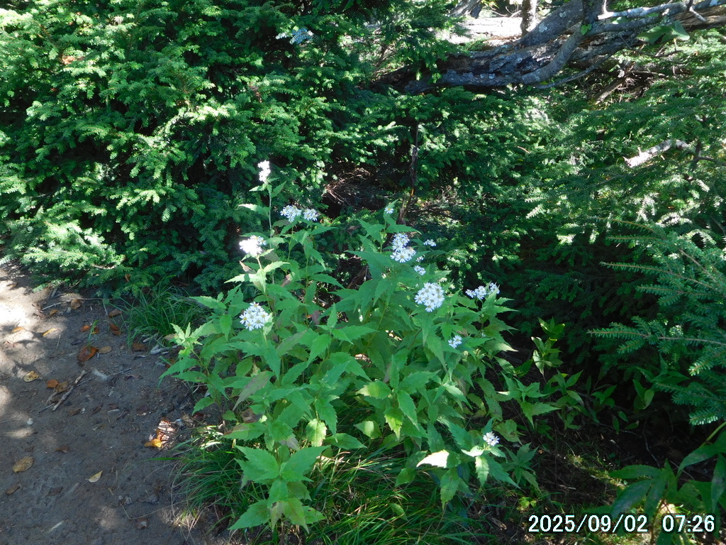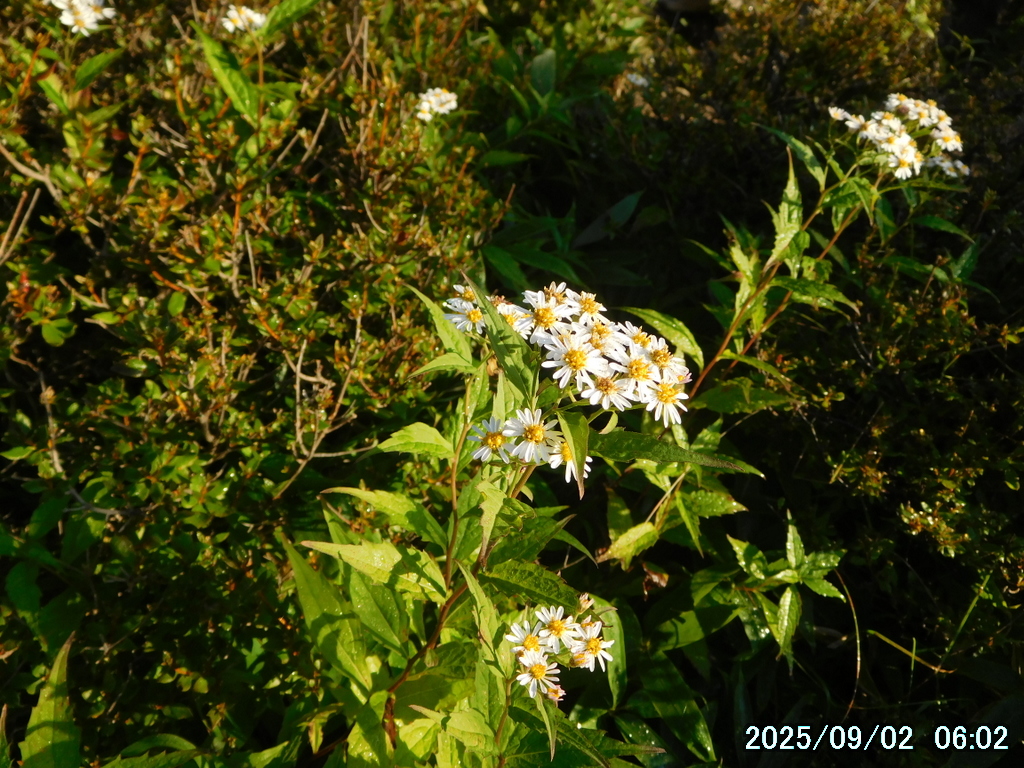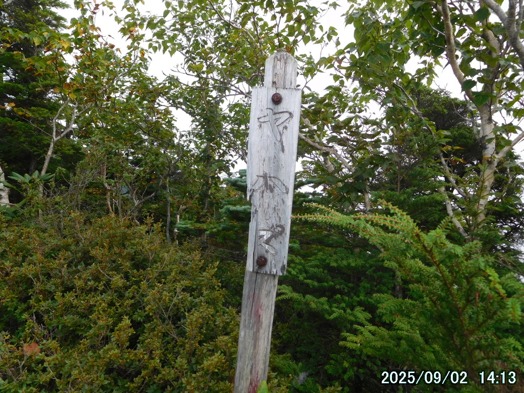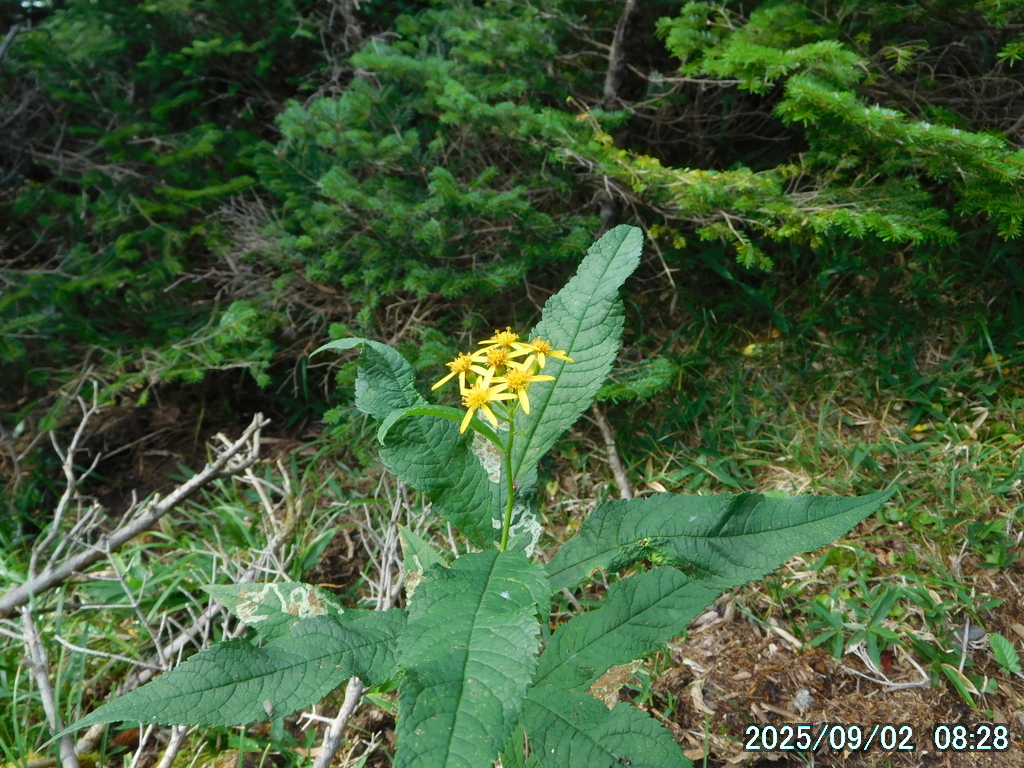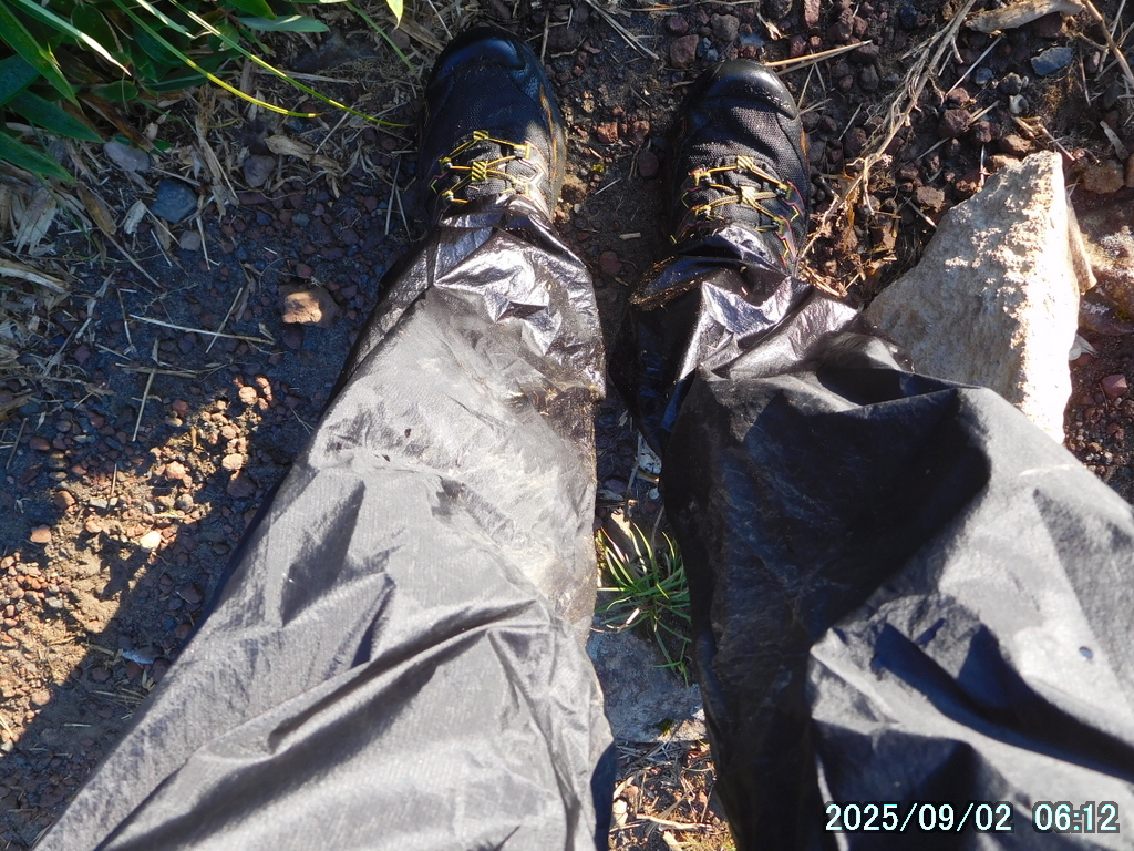 笹原に入る前に雨具のパンツを履いたが、中は大丈夫だったものの、パンツの裾から露が靴に入って靴下を濡らした。