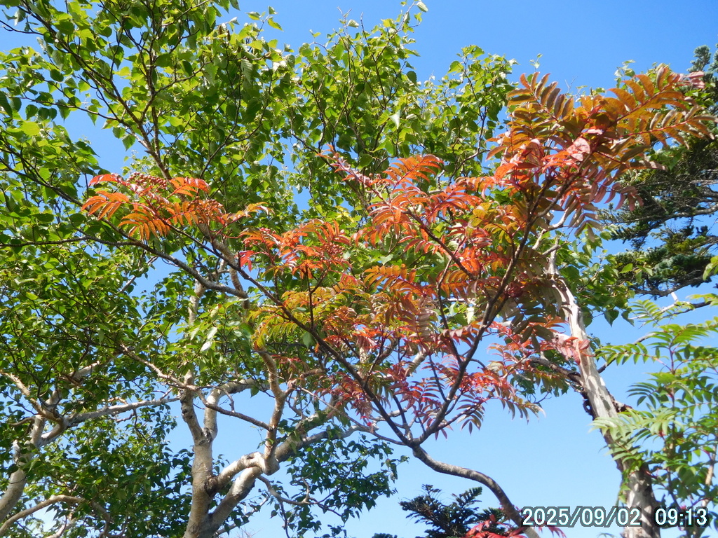 手前に赤い実を付けたナナカマドが見える。