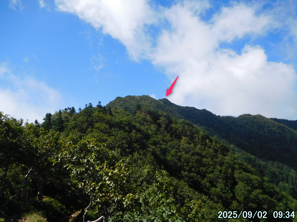まず始めに、正面に見える赤薙山(2010m)を目指す。