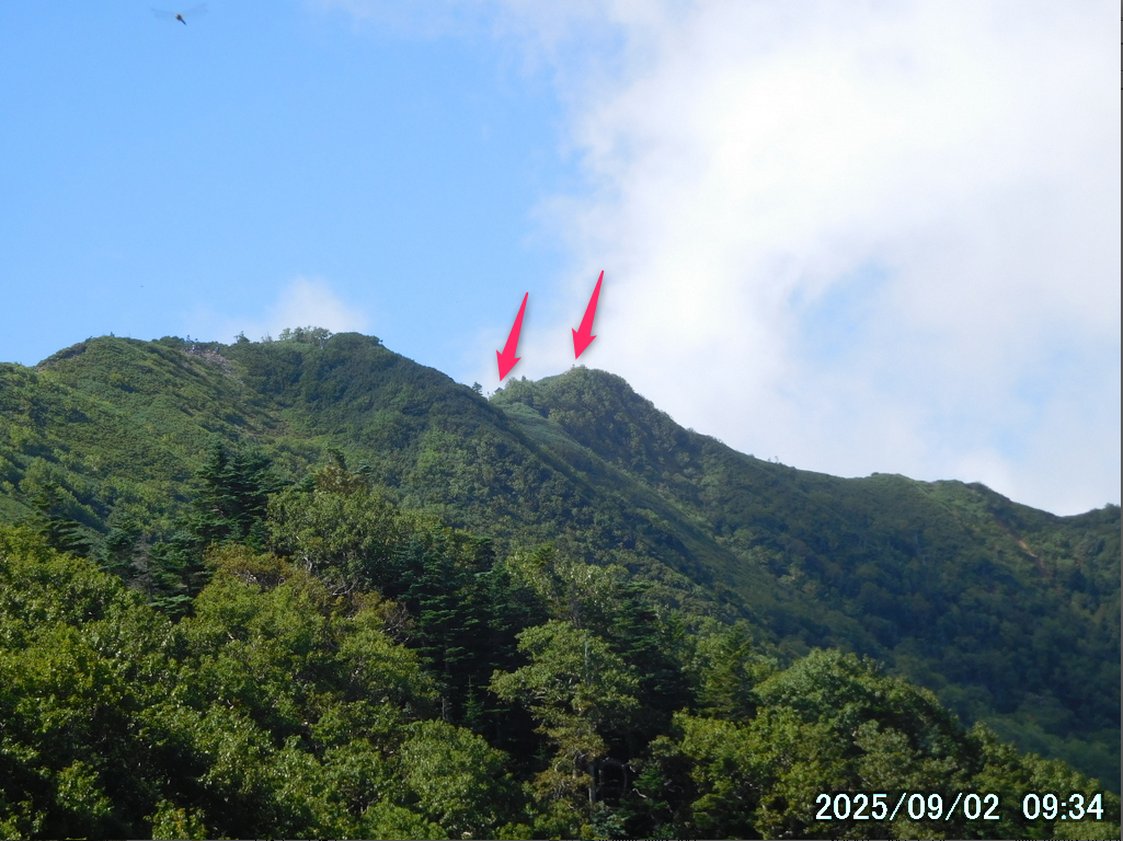 矢印が女峰山。