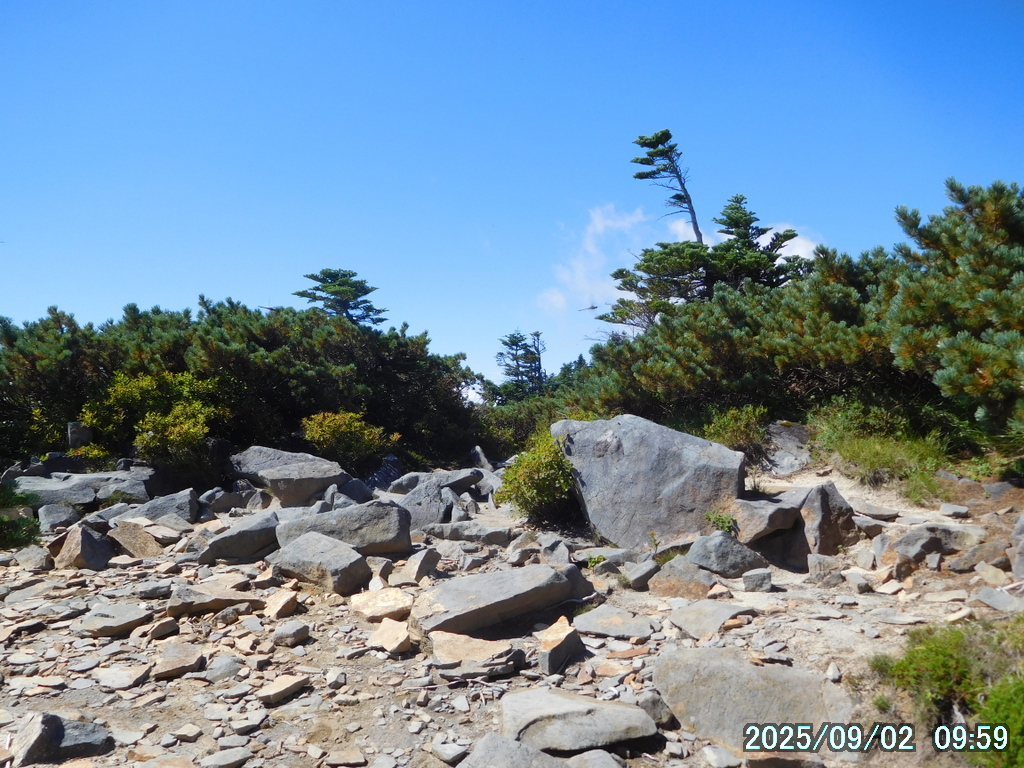 ここから先はガレ場と笹原とコメツツジの林が交互に現れる。