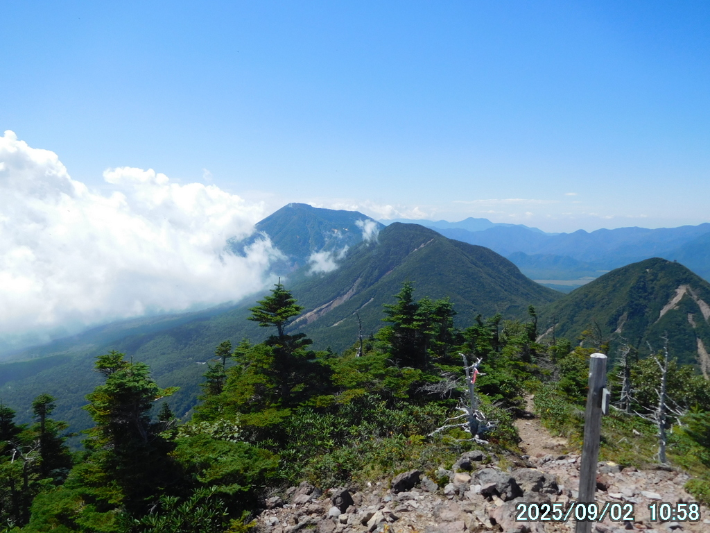 右から小真名子山(2323m)、大真名子山(2376m)、そして男体山(2486m)。