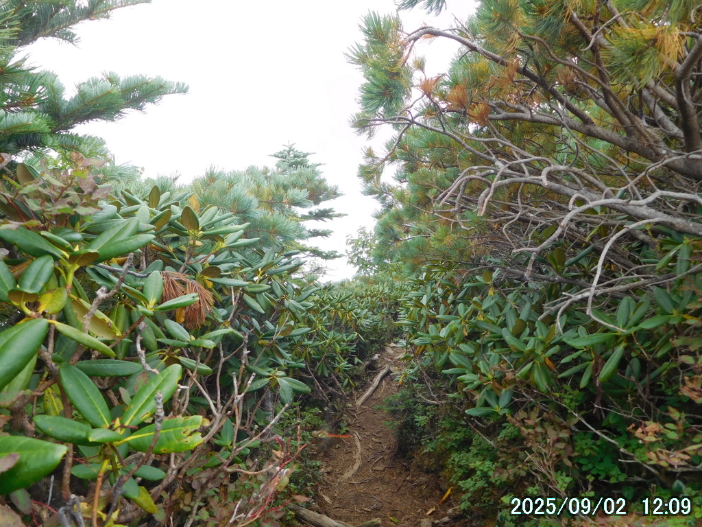 女峰山直下から標高点2209までアズマシャクナゲが群生している。