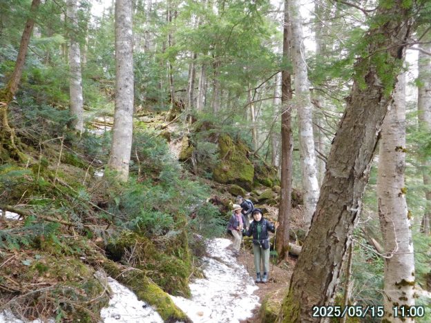 ここでほぼ平坦路になるが、この冬の降雪の多さを象徴するかのように、雪はまだ20センチほど残っていた。