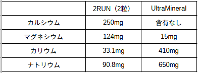 なお、UltraMineralはマグネシウムは入っているが量は少なく、熱中症対策として用いるのが正解。