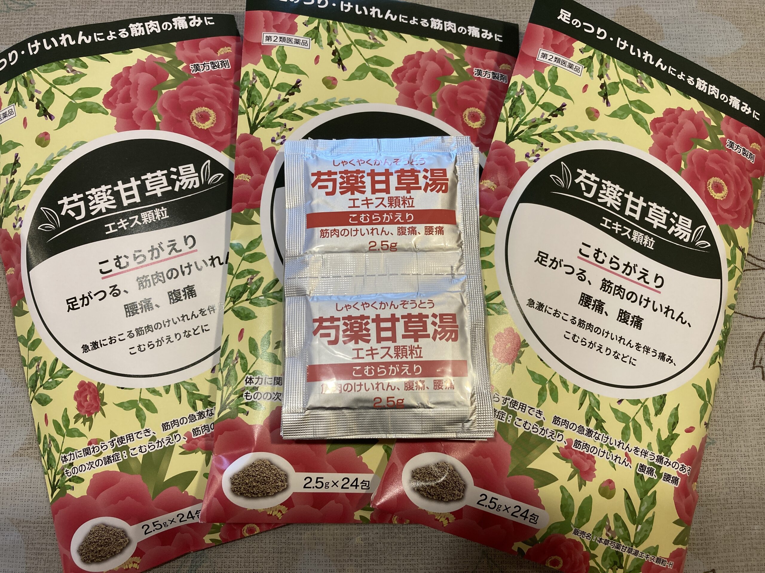ネットの情報にもある通り、筋痙攣には漢方の「芍薬甘草湯(しゃくやくかんぞうとう)」が即効性があることで知られている。