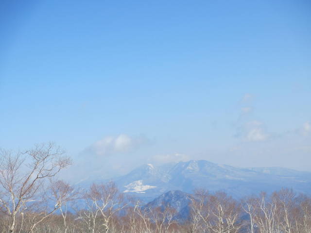 白くかすんで見えるのは男体山に雪が降っている証。