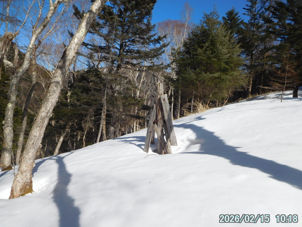 積雪量はこの道標で昨年との比較ができるが、今年は昨年比で50センチくらい少ない。