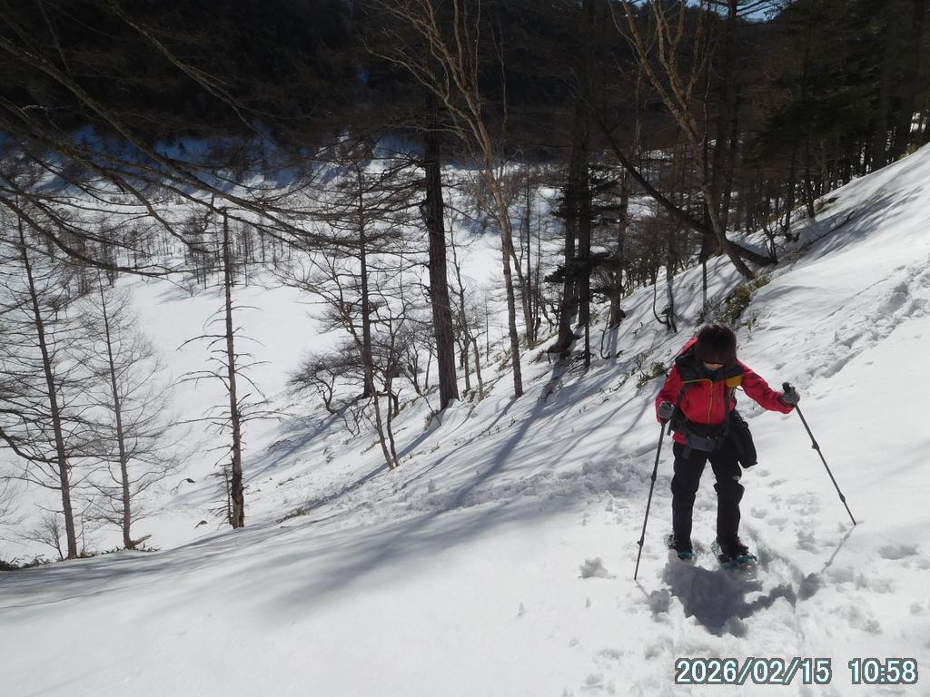 今年は2月としてはやや物足りない積雪(6日に実踏済み)とはいえ、雪は締まって歩きやすく、時間が読める。