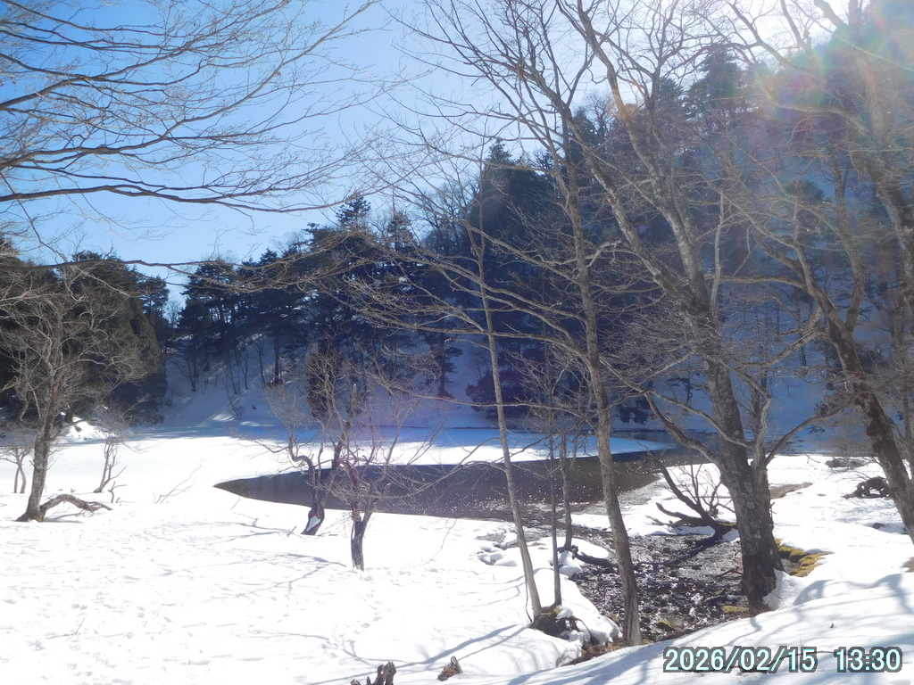 昨年、別の常連さんとチャレンジしたことがあったが、膝まで潜る雪に阻まれて、湯元から歩き始めて刈込湖に行くのが限界だった。