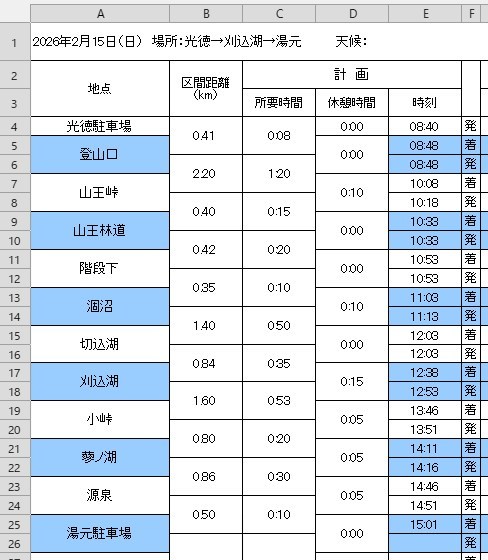 課題といえば、周回コースゆえ、下山後に管理人の車を置いた場所へ戻るのに路線バスを利用する必要があって、スタート地点を湯元にするか、それとも光徳にするかの検討だった。