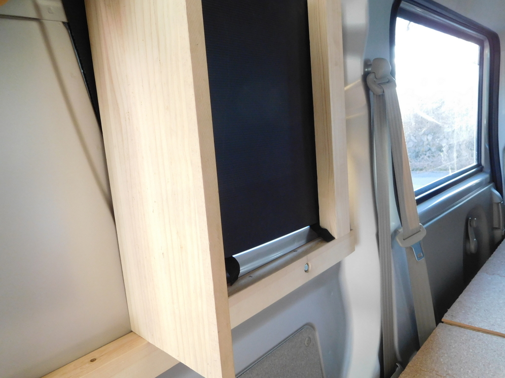 この時点での固定は底板を角材にビス留めしているだけで、木枠の上部は固定していない。固定するにも荷室にその場所がない。