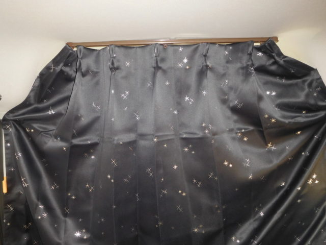 そんなわけで、家庭で使うのと同じカーテンレールと、しっかりした生地で作られているカーテンを取り付けてみた。