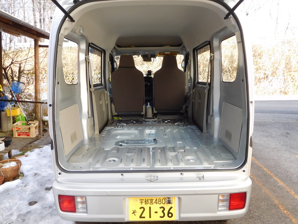 なお、本来は荷物の運搬用に使うため納車時点では鉄板の上にゴムシートが敷かれていて、荷くずれを防止するようになっているが床張りのじゃまになるため取り外した。