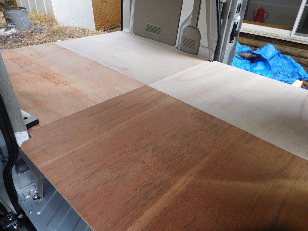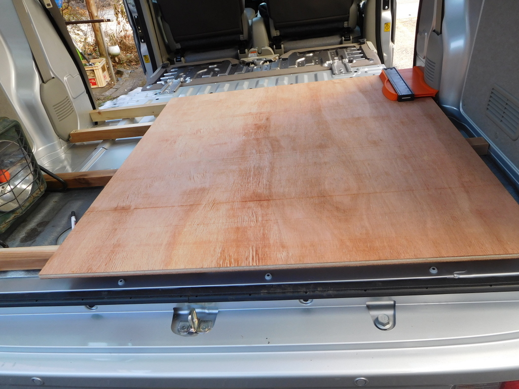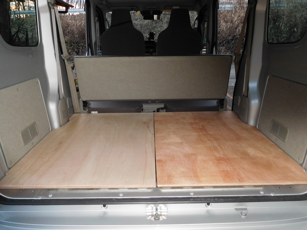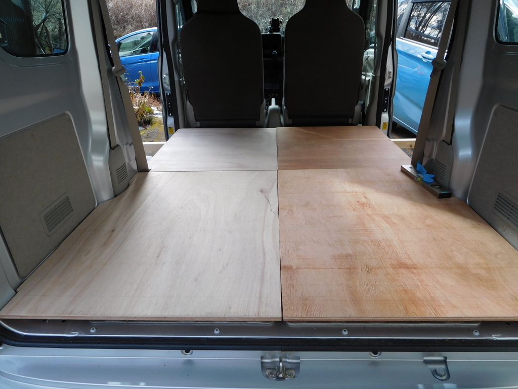 コンパネは後席より後ろに左右2枚、倒した後席の上に左右2枚、計4枚構成にした。