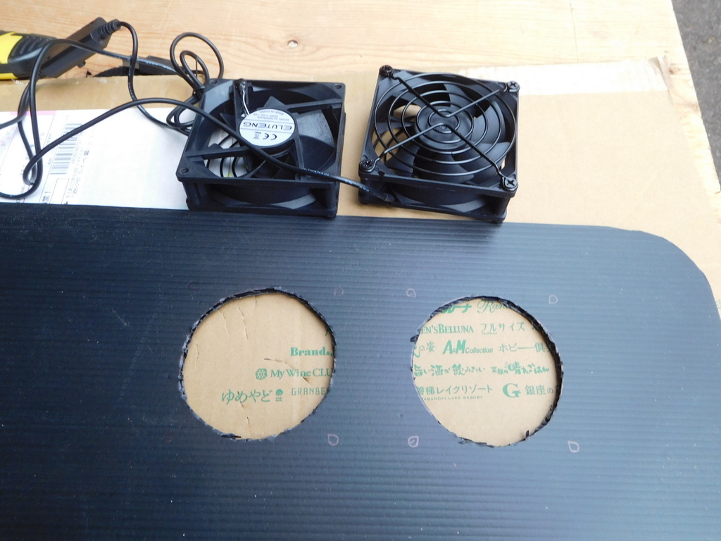 次にプラダンにファン(羽根)の大きさの穴を空けるわけだが、YouTubeでいろいろな方法を探したところ、これがもっと簡単かつ合理的と思えるのがあったのでマネをした。